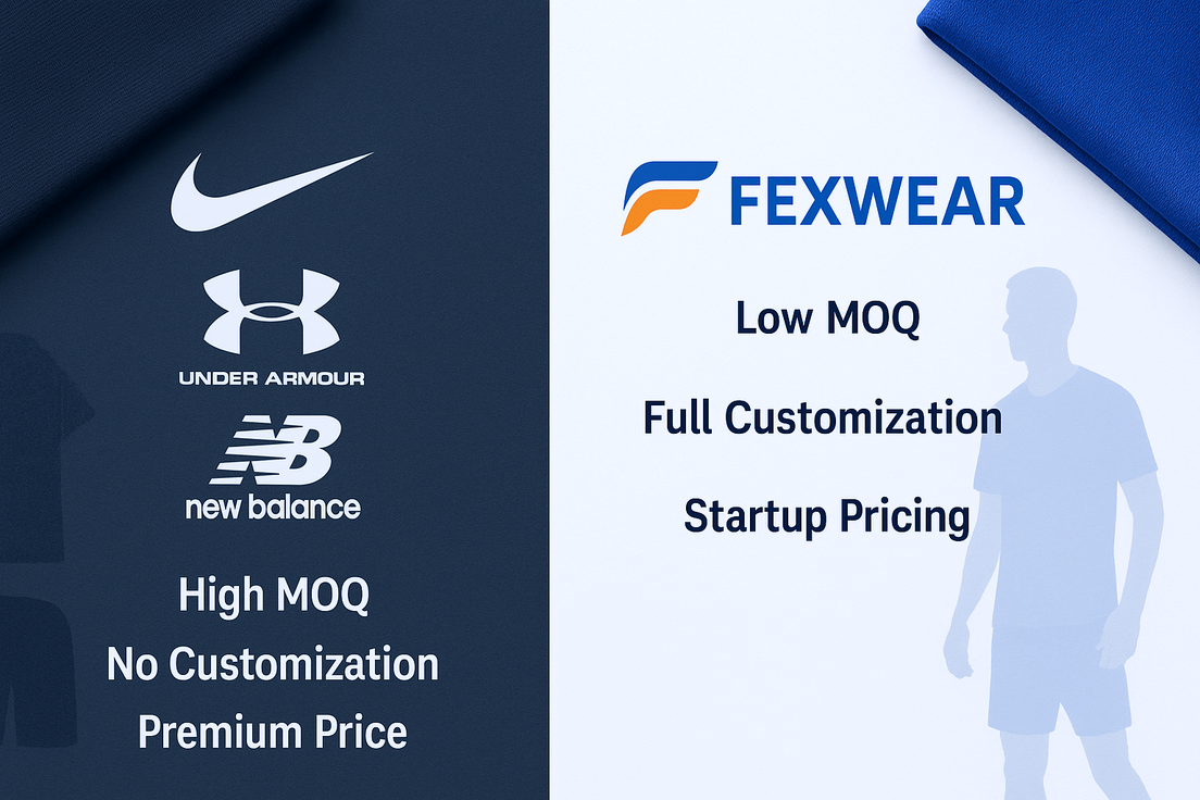A: While Nike and Under Armour are top consumer brands, they don’t support startups. Fexwear offers flexible minimums, full customization, and expert guidance — ideal for new brands.