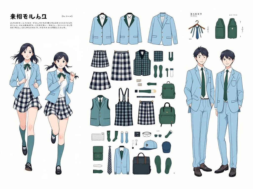 - Girls’ Sailor Fuku: Includes a blouse with a sailor-style collar and pleated skirt, iconic in Japanese school fashion.